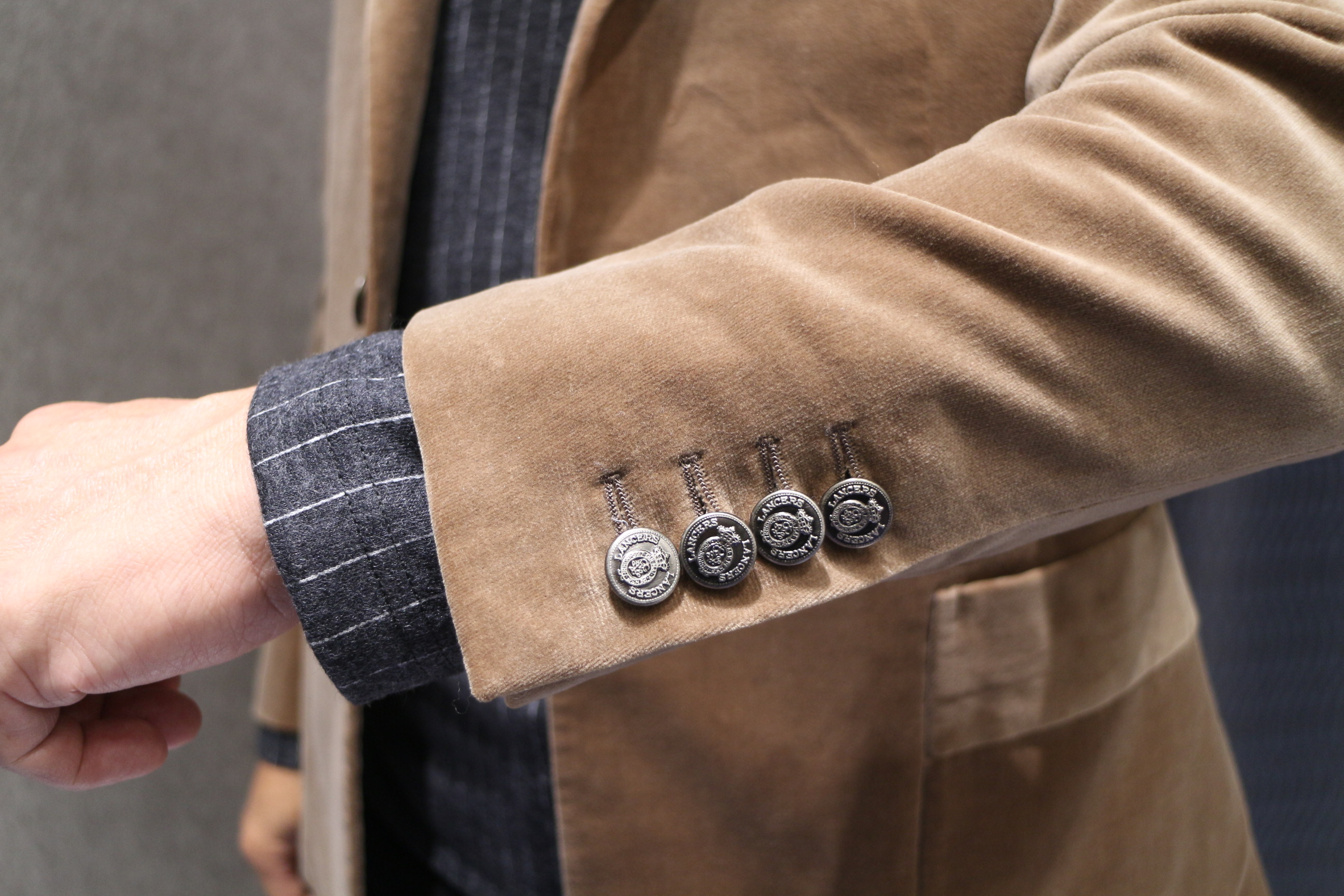 ボタンはインパクトのあるエンブレム調でとてもオシャレです。