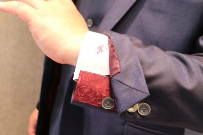ネイビーの表地に深紅の裏地が映えてとても素敵に仕上がりました。