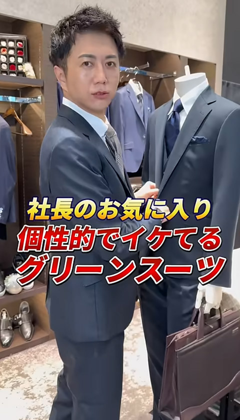 営業のお仕事は清潔感、信頼感はもとより、ちょっとした遊びも話題作りには欠かせませんから、こういうスーツを着ると笑顔で勝負が出来るような気がします。 -