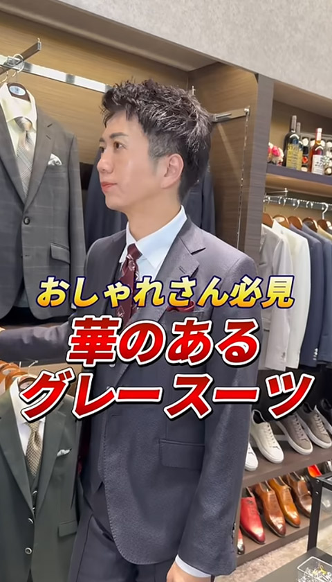 グレーのスーツが欲しくて、ただ少し無地だったりストライプには飽きてたところだったのでオススメもありこのグレンチェックにしました。自分や周りの人だけで考えていたら絶対買わないスーツですね。