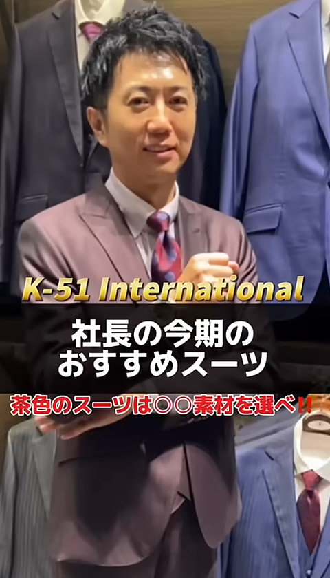 「オーダースーツ=高価」というイメージを持っている方が多くいます。百貨店に行けば値段は高くなります。量販店に行けば安価なオーダースーツも揃えているが「たくさんの種類を揃えているのでお好きな物を選んで下さい」というのが量販店のベースのスタイルなので店員はスーパーのレジ係と変わらない。 結局お客様は何を買っていいか分からず3流の店員にススめられた物を購入するしかない。K-51のオーダースーツは日本人男性で唯一の骨格スタイルアドバイザーの資格保有者であり、芸能人のスーツスタイリストなどの実績を持つ川崎浩一氏が確かな知識と感性でお客様個々に合わせたスーツスタイルを提案しています。口コミと紹介だけで数多くのお客様にご愛用いただいています。