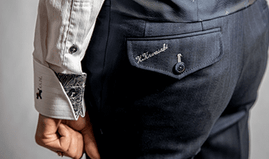 スラックスにもネームを入れてジャケットを脱いでもオーダーメイド感を演出